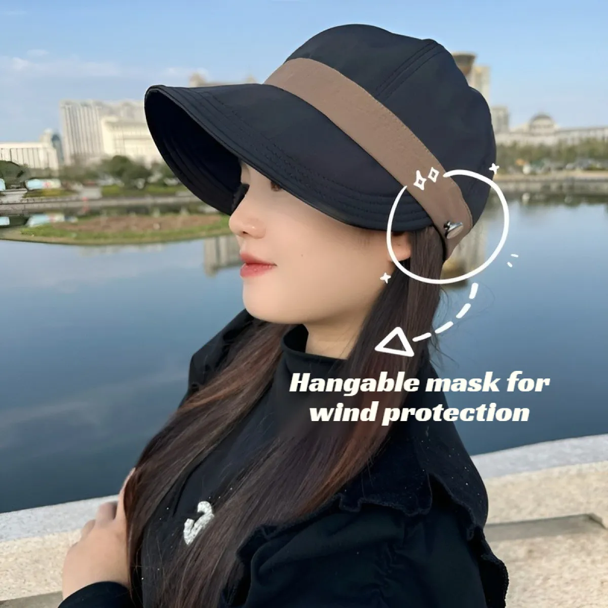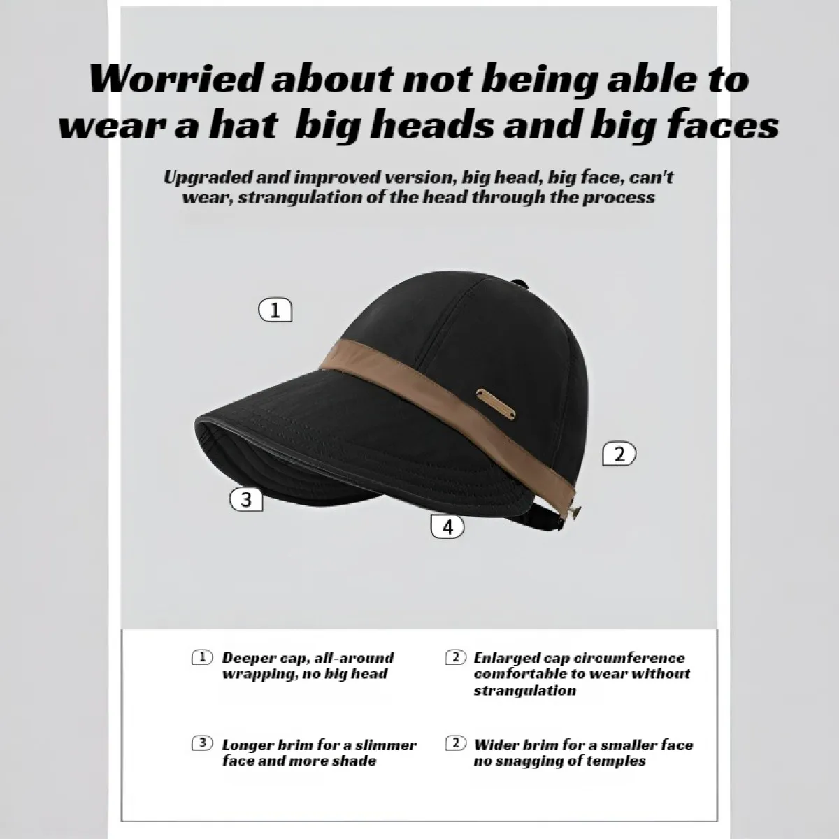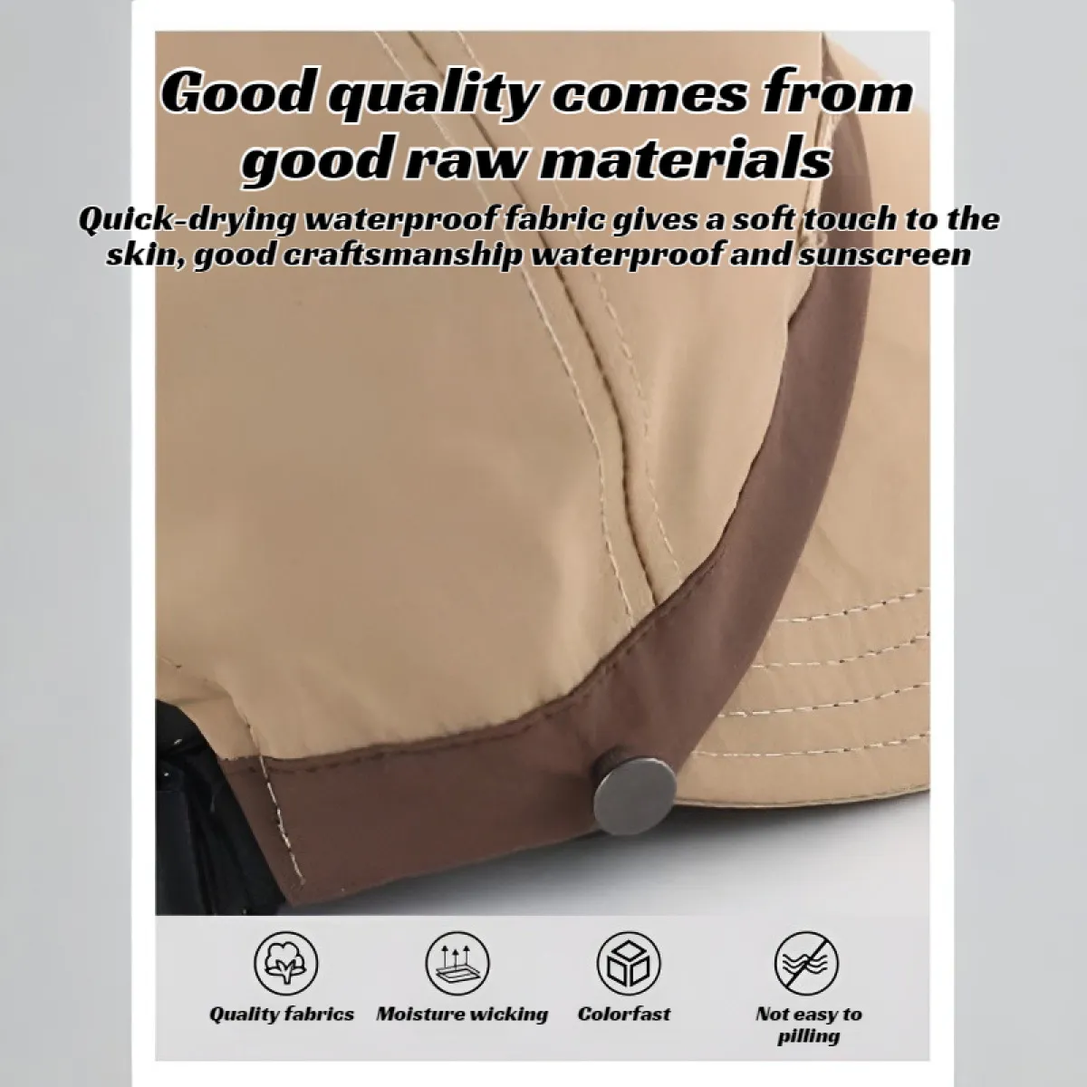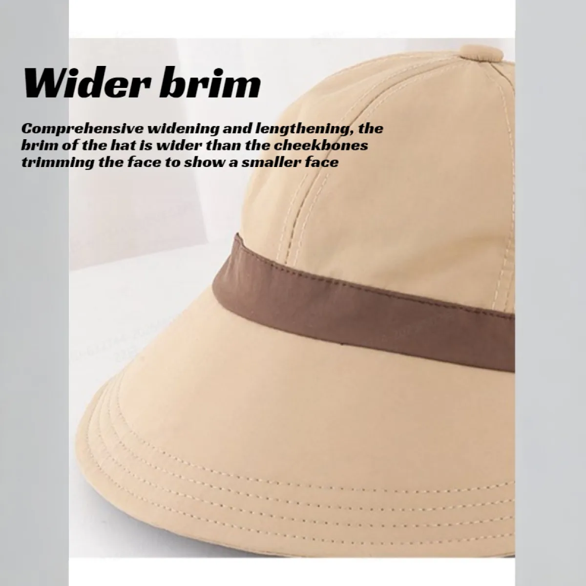 Tepian lebar melindungi wajah dan leher dari sinar matahari, menjaga kulit tetap sejuk dan terhindar dari kerusakan UV.